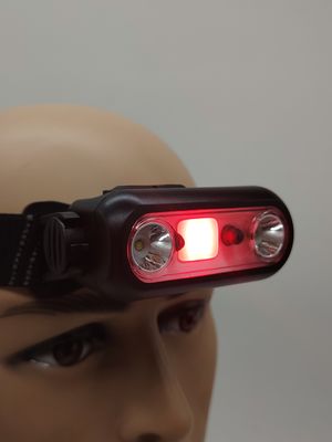 The headlamp supports both press and sensor switches, with sensor functionality available in any mode. The light can be tilted up and down by 45°, allowing flexible illumination angles. Four LED battery indicators clearly display the remaining power, flashing during charging and staying solid when fully charged.